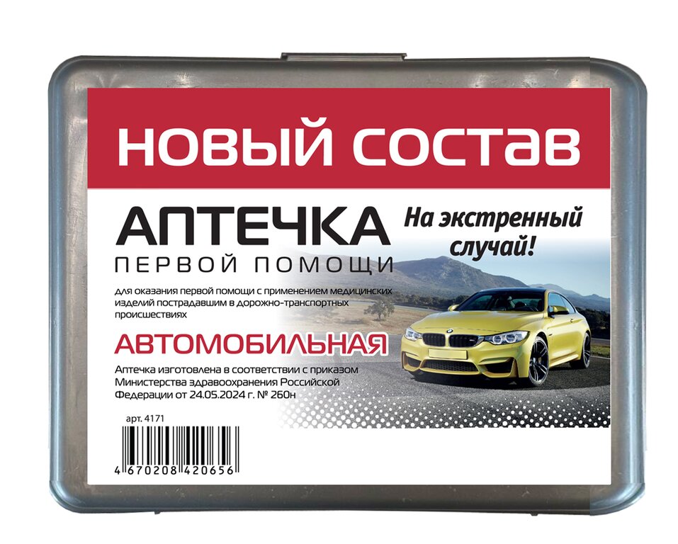 Аптечка изготовлена в соответствии с приказом Министерства здравоохранения Российской Федерации от 24.05.2024 г. №260н