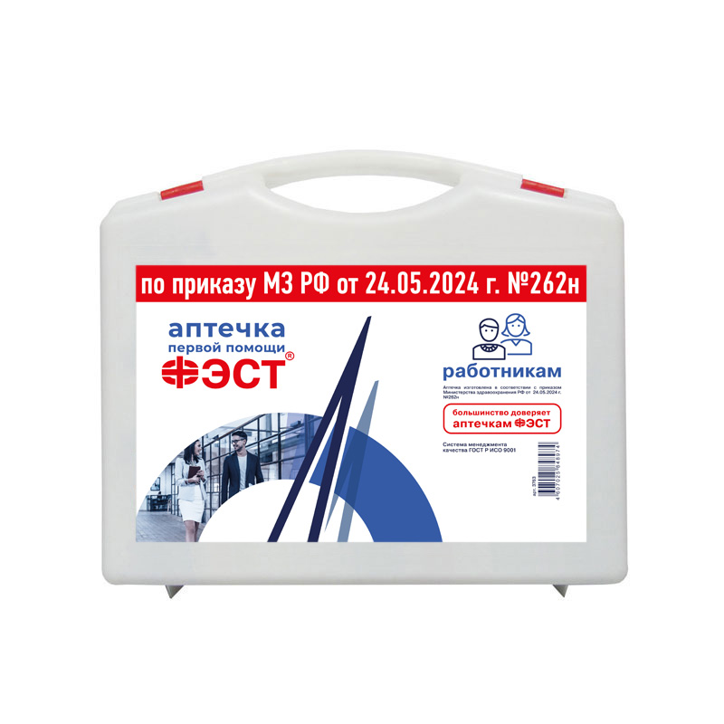 Аптечка по приказу 262н предназначена для оказания первой помощи работникам на производственных участках и в рабочих кабинетах, вне медицинских учреждений..