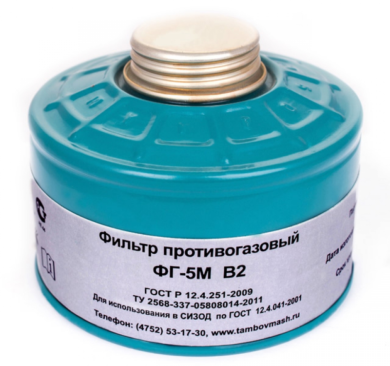 Фильтр ФГ-5М марки В2 предназначен для использования в промышленности, на предприятиях где требуется защита от неорганических газов и паров за исключением оксида углерода.