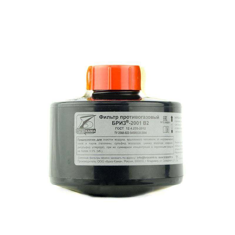 Корпус фильтра изготовлен из специальной пластмассы. Соединительная резьба соответствует ГОСТ Р 12.4.214-99 (40х3,5 мм). Фильтр Бриз-2001 используется в составе фильтрующего противогаза с полнолицевой маской.