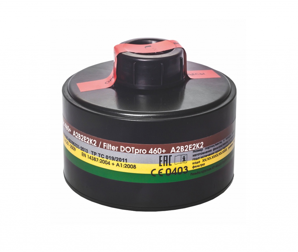 Фильтр ДОТпро 460+ А2В2Е2К2 предназначен для использования в промышленности, на предприятиях где требуется защита от органических паров с температурой кипения выше 65 оС, органических паров с температурой кипения ниже 650С, неорганических и кислых газов и паров, аммиака и его органических производных.